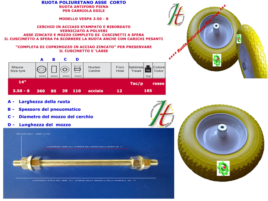 Ruota carriola Pneumatica 3.50-8  Asse Corto